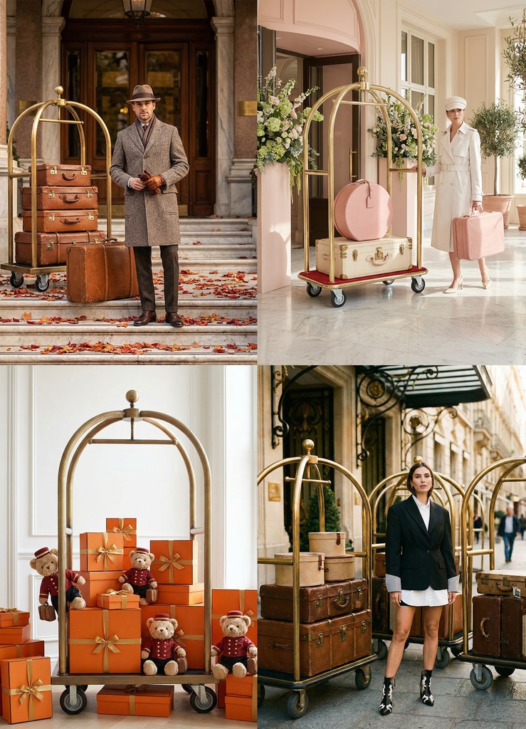 バゲージカートは台車としての機能的要素だけでなく、シンボリックなディスプレイアイテムとしての知覚的要素も兼ね備えています。現在では、ホテルで荷物を運ぶだけの台車としてではなく、おしゃれなシショップのディスプレイ什器として、CMの演出アイテムとして幅広くおしゃれアイコンとして使われています。