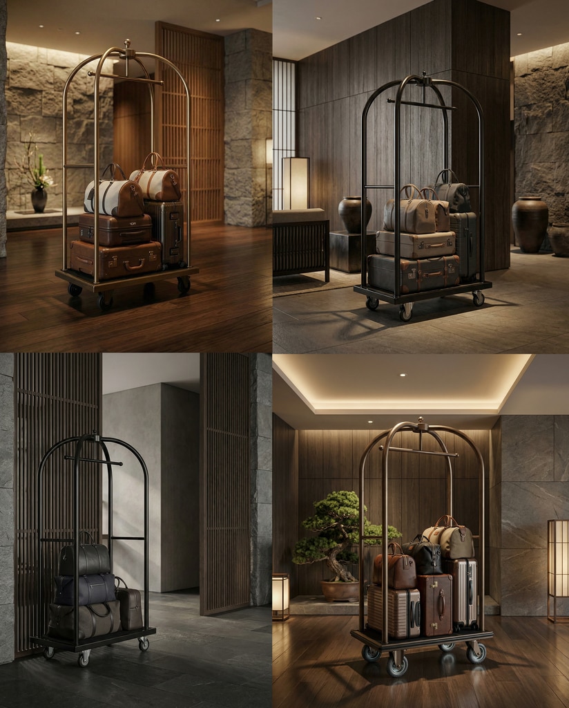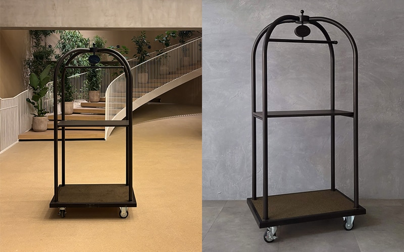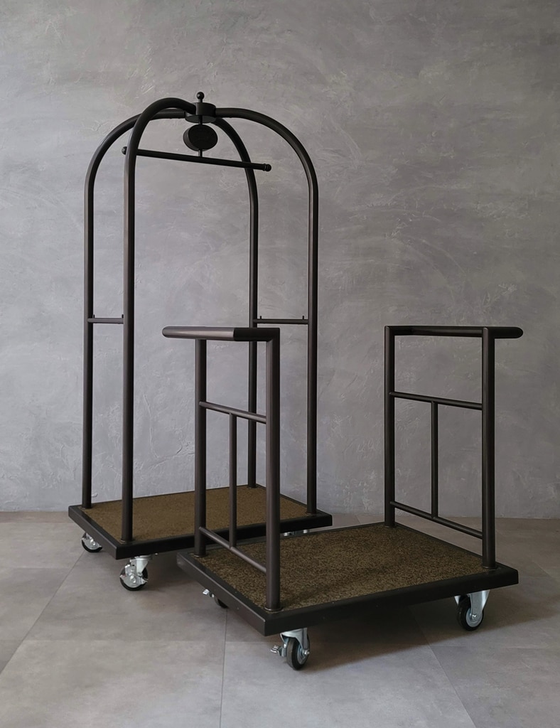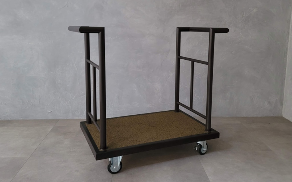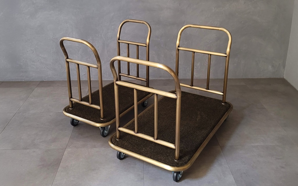 バゲージカートは、19世紀後半に、アメリカの鉄道会社で初めて導入されました。当時、列車の速度が上がり、乗客が荷物を持って列車に乗り込むことが危険になっていました。そのため、駅員が乗客の荷物を運ぶためにカートが必要になったのです。これがバゲージカートの起源とされています。その後、ホテル業界でもバゲージカートの使用が広まりました。特に高級ホテルでは、スタイリッシュなデザインが加わり、バゲージカートは高級感を演出するシンボリックなアイテムとしても重要視されるようになりました。