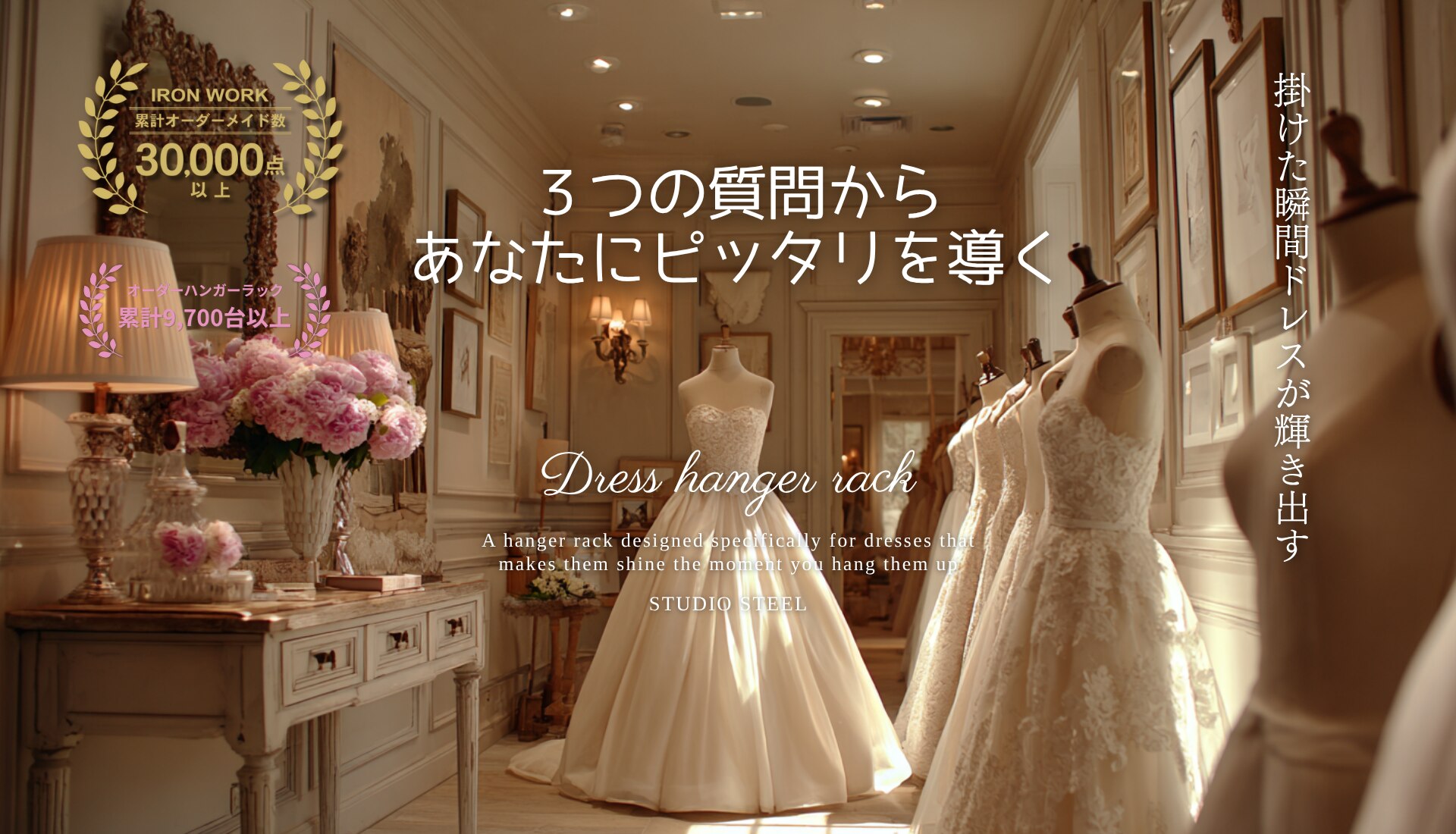 そして、その一台にドレスを掛けた瞬間、美しさが輝き出す。